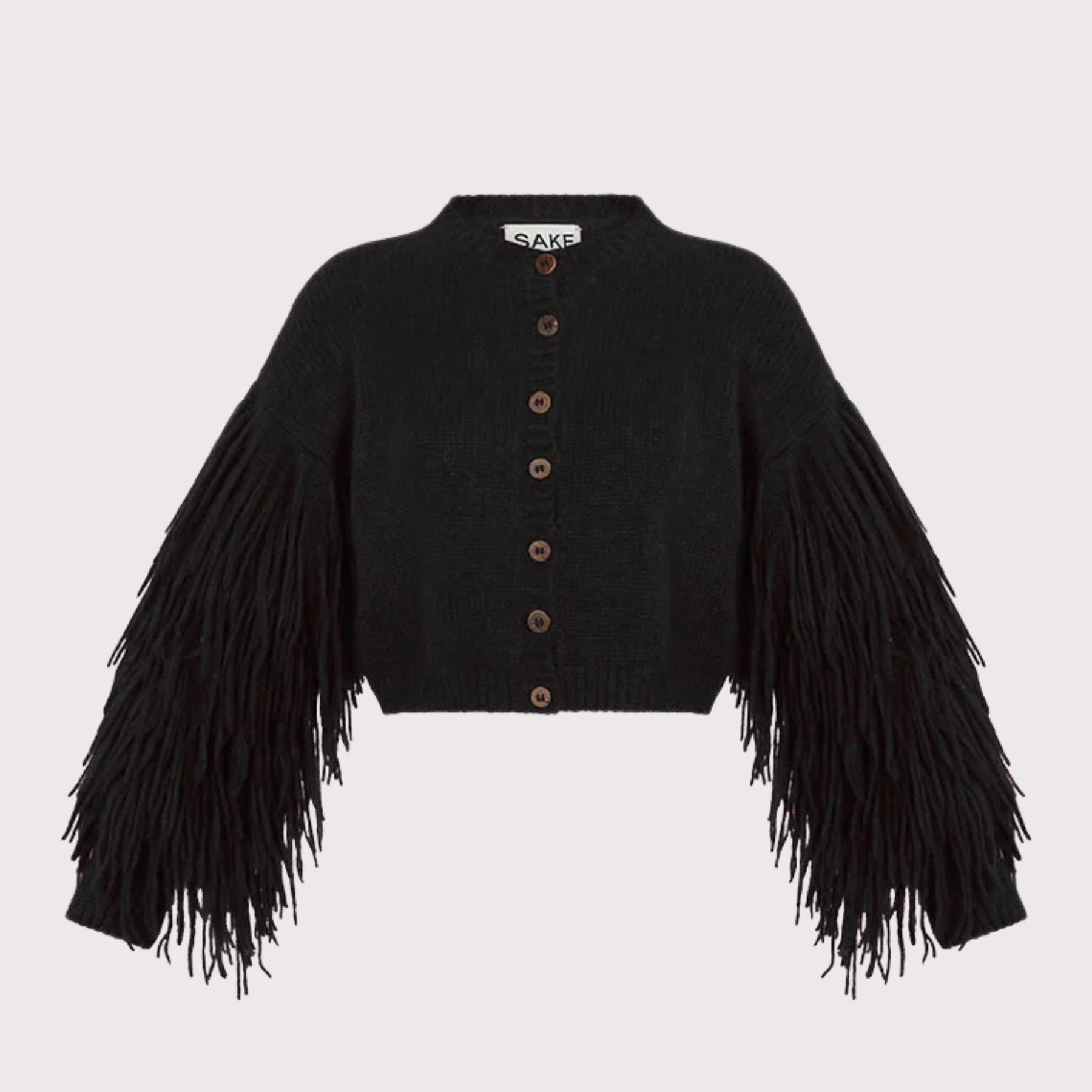 The Ulta Cardigan has a soft textured style with a semi-oversized fit, featuring fringe detailing on the sleeves.