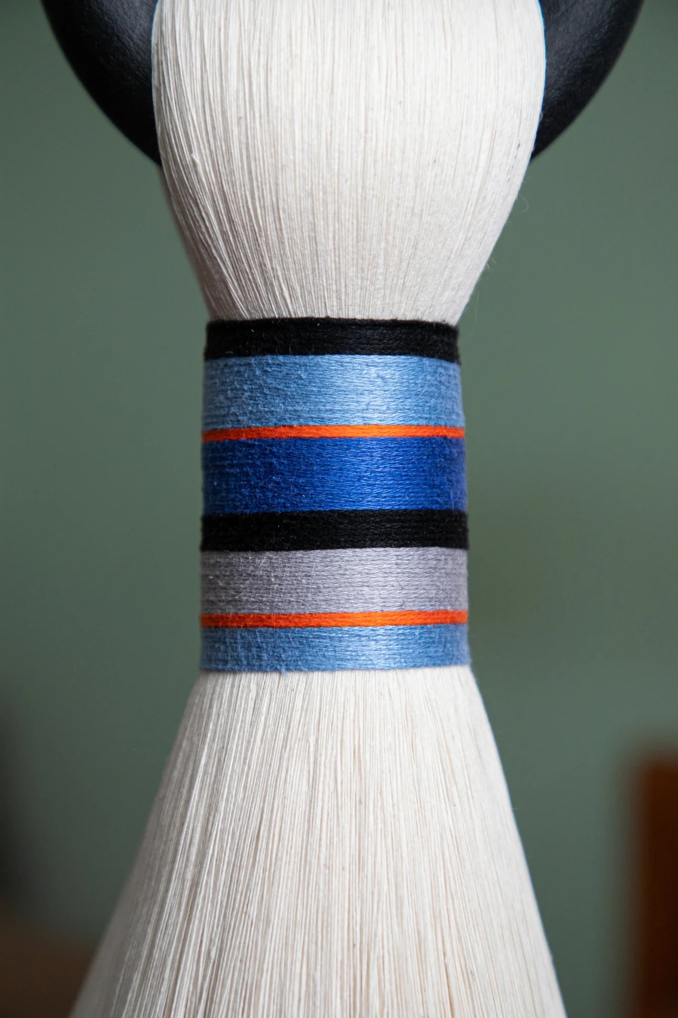The Danzante Table Stand is a handmade home accent produced from cotton threads sourced from the historic "Hércules" yarn and textile factory from 1846 in Querétaro, Mexico. It is the perfect addition to your desk, coffee table, or favorite bookshelf. Please mind that each Caralarga piece is handmade with artisan techniques, height and small details may vary slightly among each product.