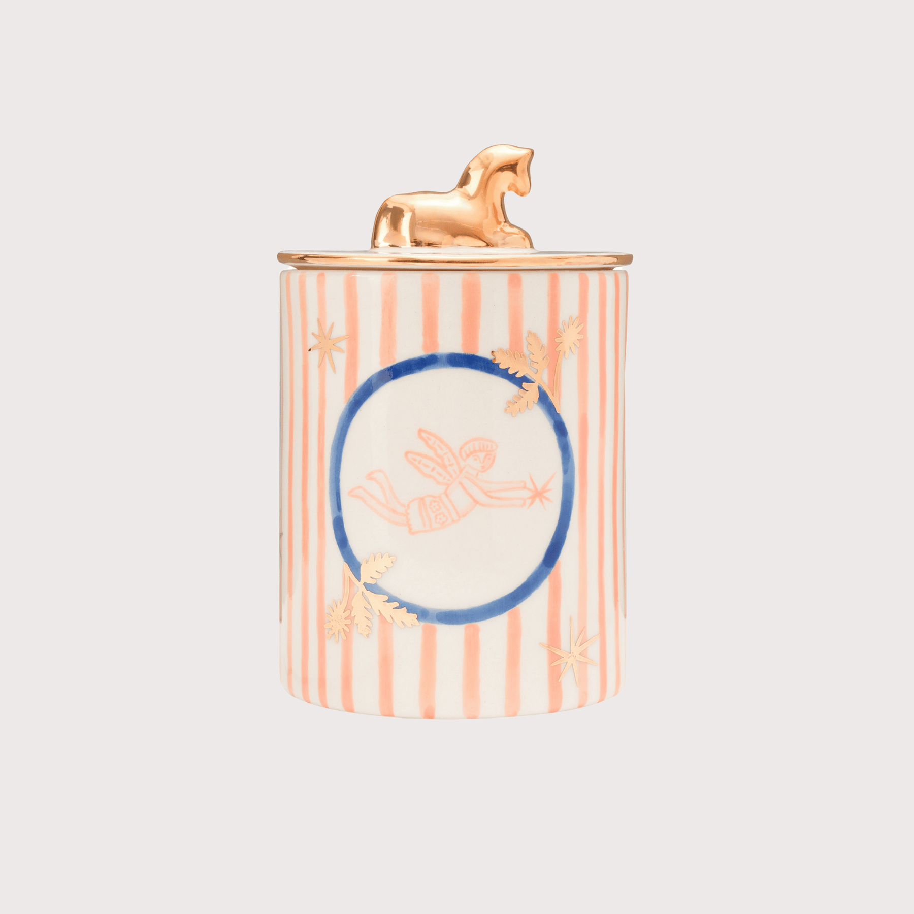 The painted design is inspired by motifs from naïve embroidered rushnyky and a 1900s bowl by Pavlo Samolovych. The figurine on the lid follows the shape of an authentic wooden toy horse. Each sugar bowl is crafted and painted by hand, with glaze and gilding, ensuring the uniqueness of the ceramic item, support for artisans, and the preservation of tradition. This symbolic piece is meant to become a meaningful and touching gift, a cherished family keepsake, or simply a beloved holiday object.