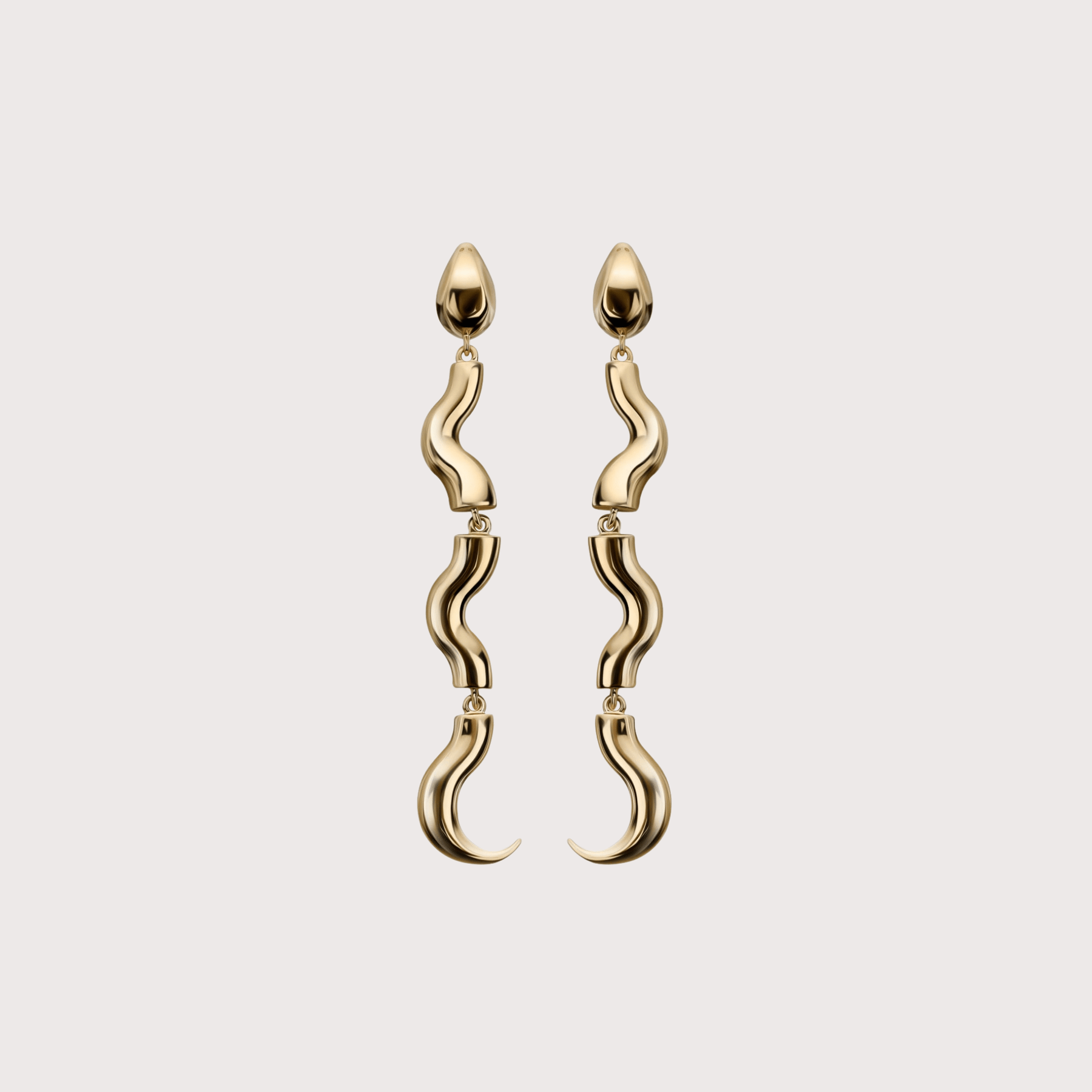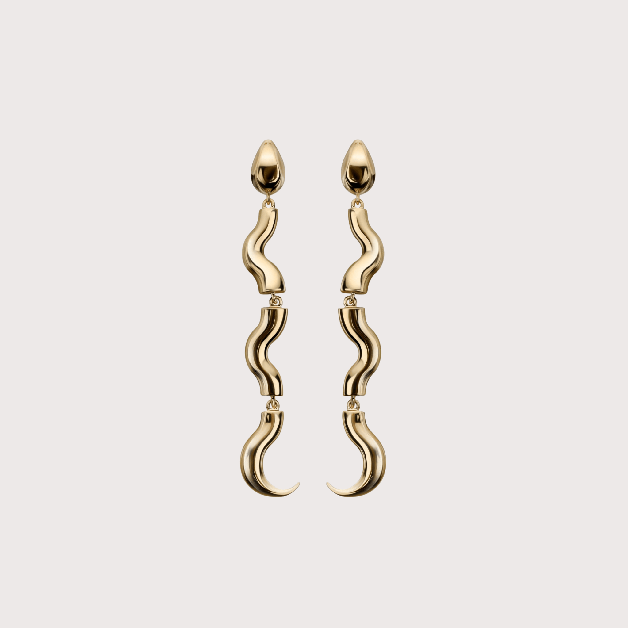 The jewelry design is inspired by the image of the constellation of the serpent in the atlas by Stanislav Lyubynetsky from 1668. Can be worn together or styled as mono earrings, allowing for unique combinations with other GUNIA pieces.