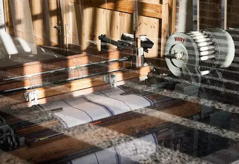 At the heart of the brand is the Mill, which opened in 2017 with sixteen restored looms of three different sorts: The Lancashire Shuttle Looms, Ruti Looms and the Dornier Looms.