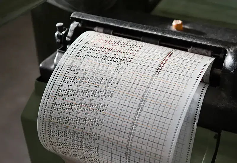Each piece goes through a multi-step process from inception to finish. Pulling information from antique weaving books, designs are hand-drawn onto graph paper that is then fed into the loom. The threads are then set up in a process called warping. Depending on the width and thickness of yarn, the warp could have anything from 800 to 5000 threads. An average Mungo warp is about 500 to 1000 meters.