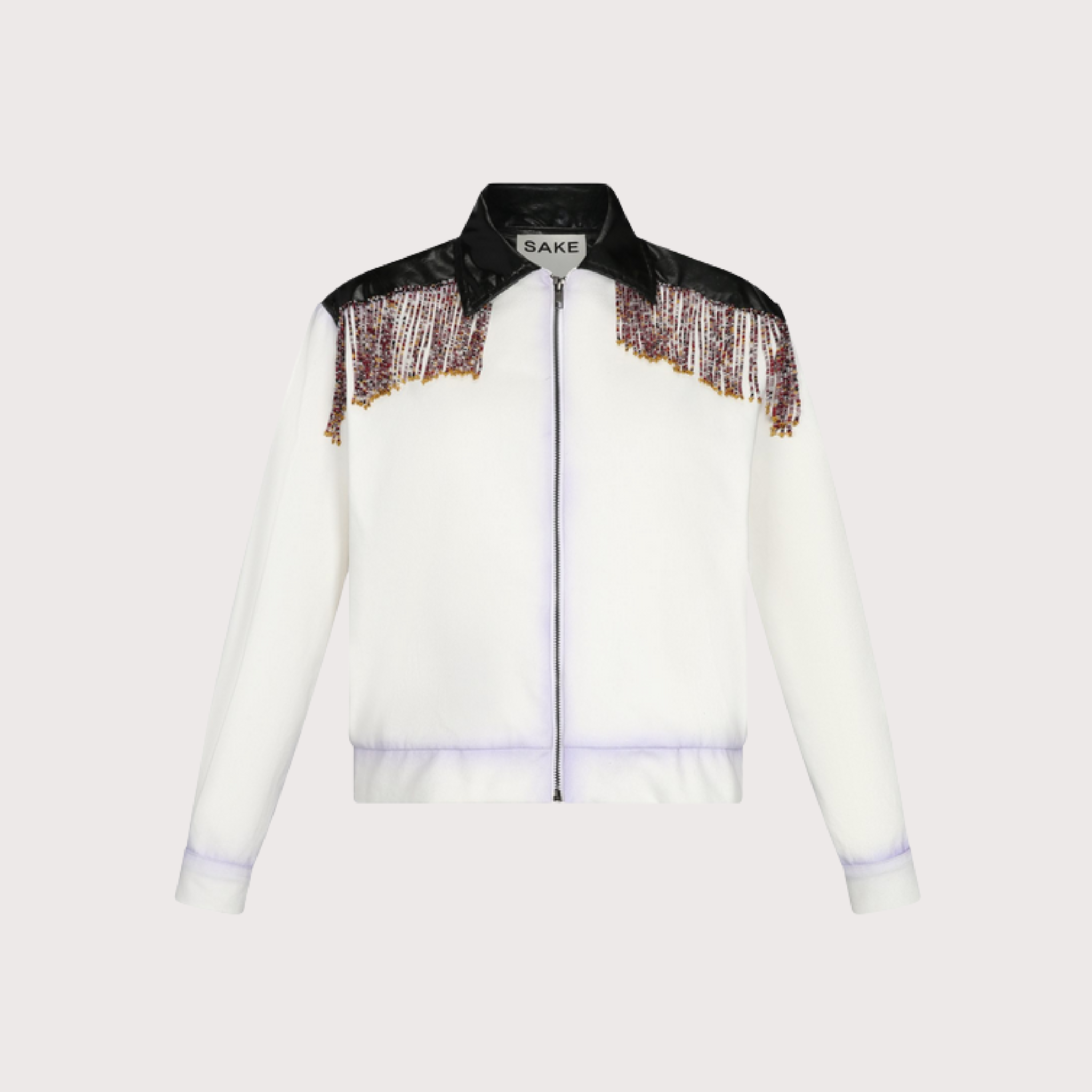 The Warmi Jacket weaves together storytelling and craftsmanship. Made from premium Peruvian cotton, it features a yoke and collar crafted from Caucho Salvaje, a sustainable leather alternative born from the brand’s innovative research. Artisanal beadwork, created by a Peruvian Amazonian community, and delicate crystal glass fringe add refined details. The soft, airbrushed finish, achieved with eco-friendly dyes, enhances the artistic narrative. This jacket unites diverse processes and communities across Peru, blending tradition and technology in a piece that tells a story of heritage and innovation.