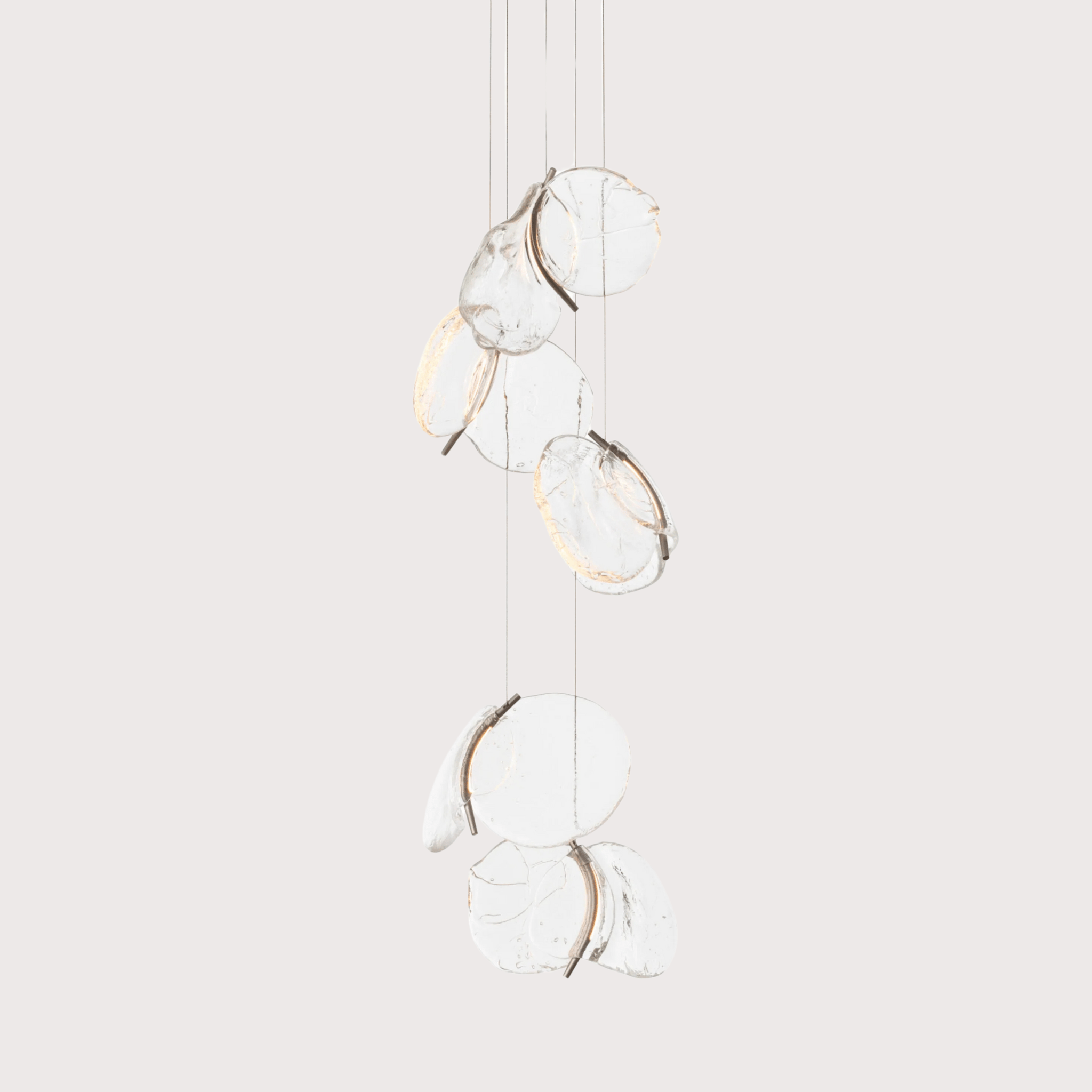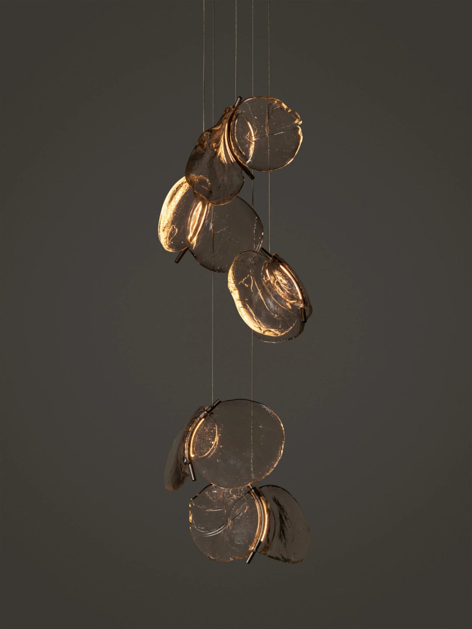 141.5 is composed of five poured glass pendants that attach to a single canopy.