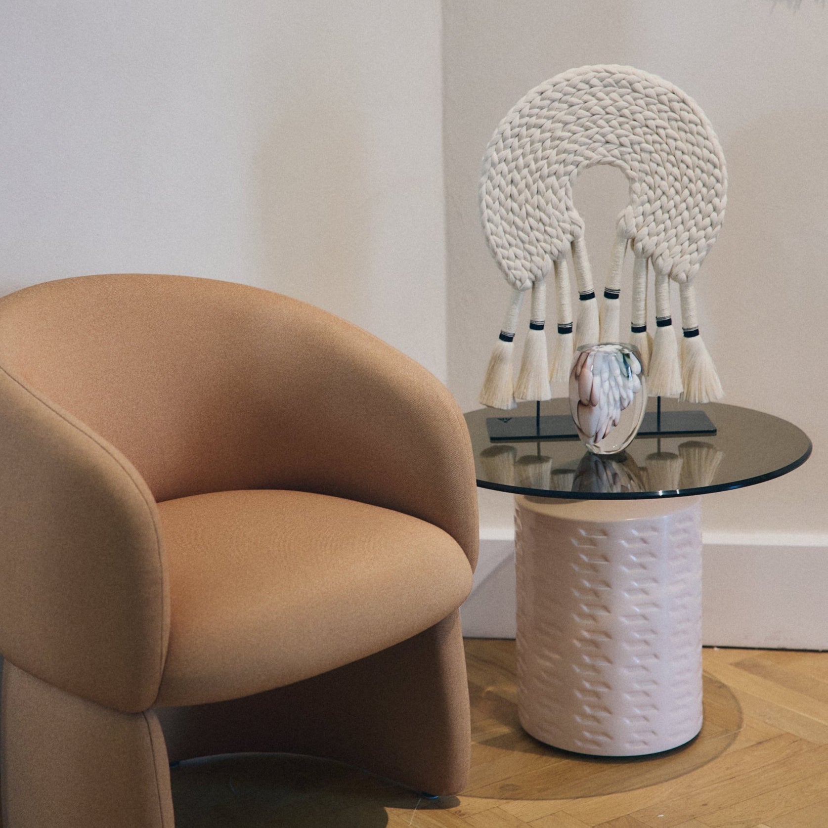 Caralarga is a textile design studio founded by Ana Holschneider, based in an old textile factory in Querétaro, Mexico. The brand transforms raw cotton and textile waste into timeless, handcrafted wall hangings and jewelry in close collaboration with local artisans. They seek to preserve their essence and highlight their virtues, transforming them into high-quality handcrafted pieces. Through their designs, they aim to convey the value of our hands and emphasize the natural beauty of each material.